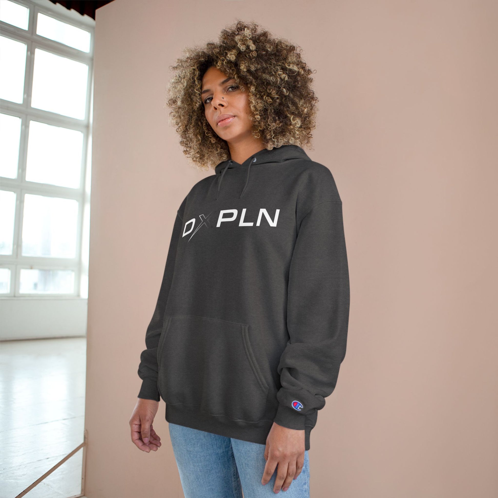 Empower your street style with this DXPLN hoodie, made of 50% cotton and 50% polyester for a strong and smooth fabric perfect for printing. Featuring a hood with drawstrings, a spacious kangaroo pouch pocket, and a seamless design, this Champion hoodie offers warmth, coziness, and convenience. The iconic "C" logo on the sleeve adds a touch of authenticity to this custom hoodie.
